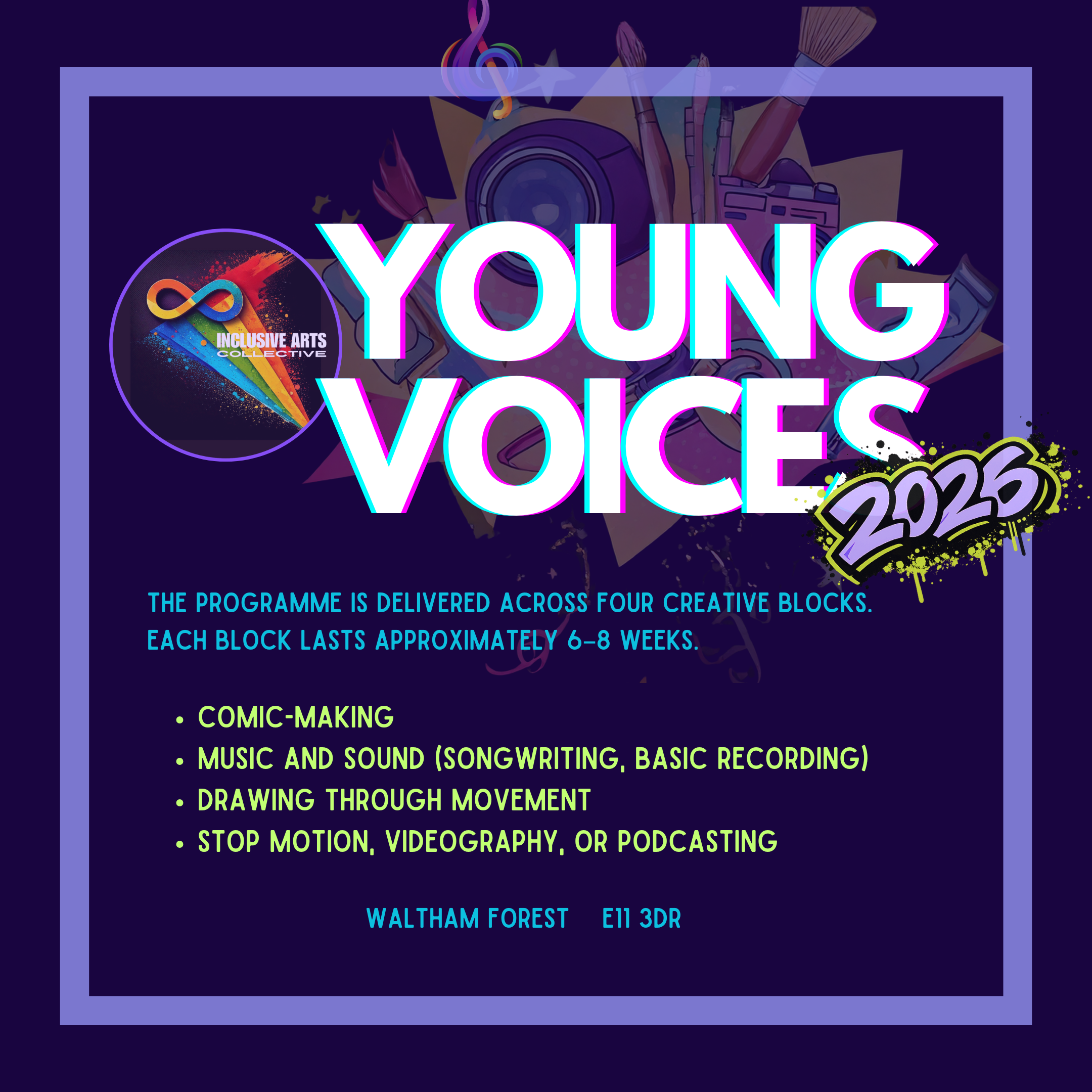 This is a creative programme by Inclusive Arts Collective CIC for children and young people aged 10–15 in Waltham Forest.